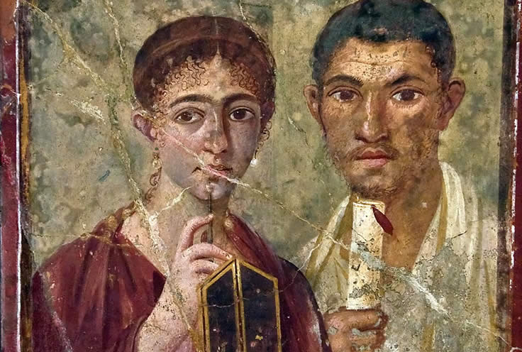 Our guided visit of Pompeii will bring the city back to life for you. We will describe the culture of the time and such things as the role of the family, the relationship between generations, the condition of women, marriage, the role of slaves, the politics and government of the city, the methods of electoral propaganda, even the clothing of the different social classes. We will tell you about trade and commerce, the production of bread, cloth dyeing, and the precious oil produced in Pompeii. We will see various temples and have a glimpse into religious life, its traditions, beliefs, superstitions, and funeral rites. We will see the typology of the Roman houses, its various rooms and their uses, the systems for heating them.