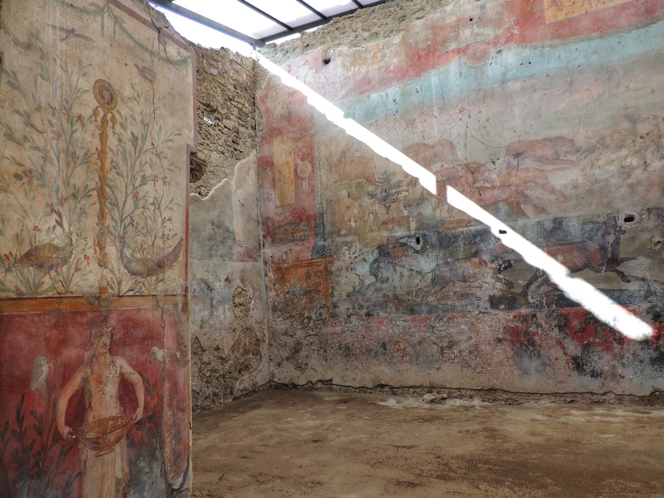 The decoration of the houses will teach us about the evolution of different fresco styles and the use of mosaics. We will encounter other aspects of daily life such as dining habits, the foods that were eaten, the famous garum sauce; we will see gardens and acquaducts; we will show you how the lighting systems and the latrines functioned in both public and private spaces. Our skilled guide will explain you the public entertainment and recount the fights that broke out between rival fans of opposing gladiator teams. You will discover the traces of life in the thermal baths, the taverns and the gambling, the brothels where both men and women prostitutes worked.