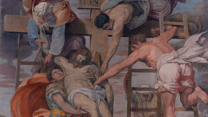 For the devout Michelangelo, the perfection of the nude human form was both the highpoint of artistic creation and the purest expression of the divine in the world of men. But not all of his contemporaries were convinced of the edifying potential of naked flesh. When Pope Paul III came to assess Michelangelo’s progress on the commission, his prudish master of ceremonies Biagio da Cesena tagged along. Appalled by the nudity all around him, Biagio remarked that the decorations were more fitting for a brothel than the pope’s private chapel. Michelangelo was upset at this affront to both his artistic ability and his highly refined sense of spirituality, and viciously retaliated – not with his fists, but with his brushes.