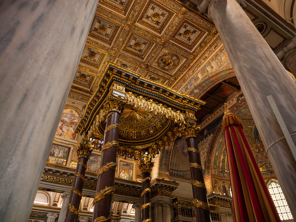 Our tour concludes in one of the most important churches in Rome. Dedicated to the Virgin Mary and founded, according to tradition, in the wake of a miraculous 5th-century snowfall, Santa Maria Maggiore has been a pilgrimage destination for the faithful and art lovers alike for over 1,500 years. First amongst equals in the church’s stunning array of artistic masterpieces is the mosaic cycle portraying key events from the Old Testament that adorn its nave.