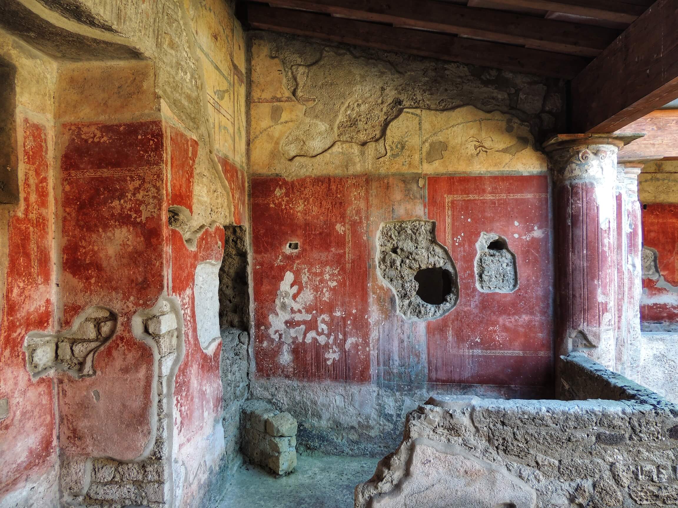 Our guided visit of Pompeii will bring the city back to life for you. We will describe the culture of the time and such things as the role of the family, the relationship between generations, the condition of women, marriage, the role of slaves, the politics and government of the city, the methods of electoral propaganda, even the clothing of the different social classes. We will tell you about trade and commerce, the production of bread, cloth dyeing, and the precious oil produced in Pompeii. We will see various temples and have a glimpse into religious life, its traditions, beliefs, superstitions, and funeral rites. We will see the typology of the Roman houses, its various rooms and their uses, the systems for heating them.