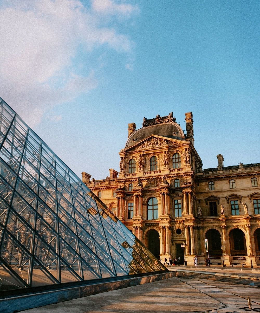 Stand in the elegant embrace of the mighty arms of the Louvre, the principal residence of France’s kings for more than 2 centuries. Majestic Baroque façades watch over the courtyard, where visitors queue for the museum, local business people enjoy a glass of champagne in the sun, and children frolic and cavort among the fountains. Scattered across the grand courtyard are the glass and steel pyramids designed be world-renowned Chinese American architect I.M. Pei, reminding us of the need to be solidly rooted to the past while inspiring us to venture ever more boldly into the future.