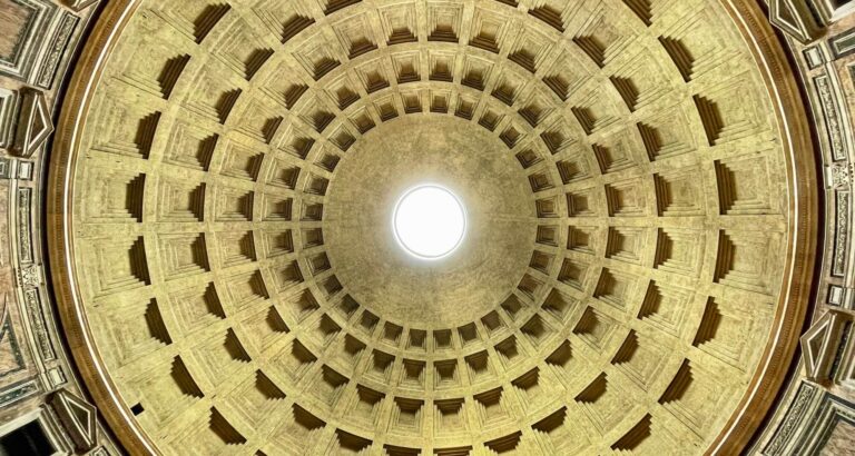 Weighing in at a mind-boggling 4,535-tonnes, it demonstrates the advanced skill and confidence of ancient Roman engineering better than any other structure. The dome forms a perfect hemisphere – its diameter and height are the same – helping to create an harmonious and balanced interior space that embodies the Romans’ sophisticated understanding of geometry.